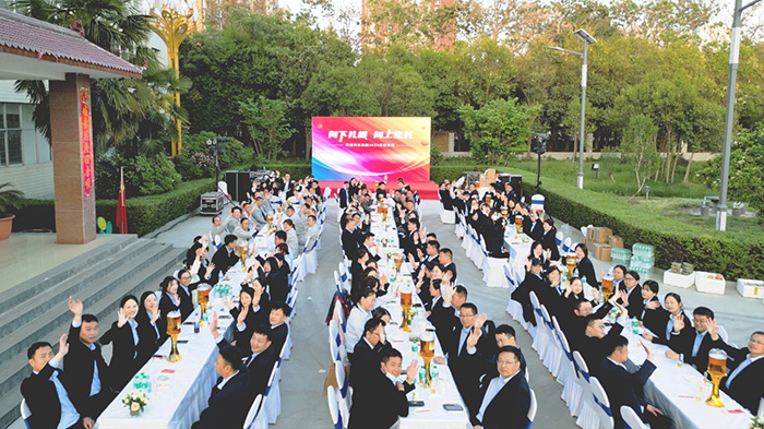 隨著一陣陣歡呼聲,家宴正式拉開(kāi)序幕,董事長(zhǎng)楚科奇及集團(tuán)管理層共同登臺(tái)祝酒,為這個(gè)美好的歡聚時(shí)刻,與所有家人舉杯慶祝。現(xiàn)場(chǎng)華燈璀璨,笙歌高揚(yáng),家人滿座,笑語(yǔ)滿堂。