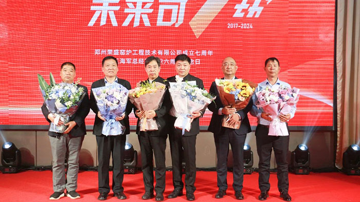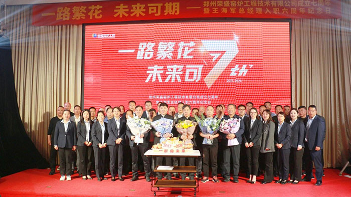一路繁花,未來可期。10月25日,鄭州榮盛窯爐工程技術有限公司成立七周年慶暨王海軍總經理入職六周年紀念活動在魯班喜悅酒店隆重舉行。河南榮盛科技集團董事長楚科奇、總經理王海軍、特邀嘉賓、集團管理層及工程項目部員工等70余人出席了活動,共同回顧榮盛窯爐工程公司七年的輝煌歷程,并展望公司更加絢爛的未來。