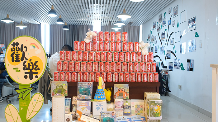 會場經精心布置后煥然一新,輕盈的氣球錯落有致地排列,為現場增添了靈動之感。精致的禮品琳瑯滿目,而鐫刻著“夏有風意正濃”字樣的巨型蛋糕,更是眾人矚目的中心,生日會也在美好的氛圍中如約而至。