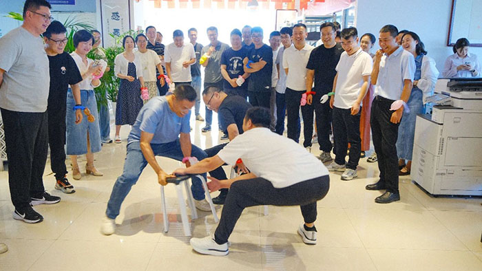 「你畫我猜」環(huán)節(jié),每隊派出精兵強將,接力作畫猜詞,只見畫筆在白板上快速游走,傳遞時,隊員們都眉頭緊鎖、神情專注地思考,努力挖取線索,直到最后一人喊出正確答案,全場爆發(fā)熱烈的掌聲,團隊的默契在這一刻達到極致,隊員們捧著豐富的禮品都露出勝利的喜悅。